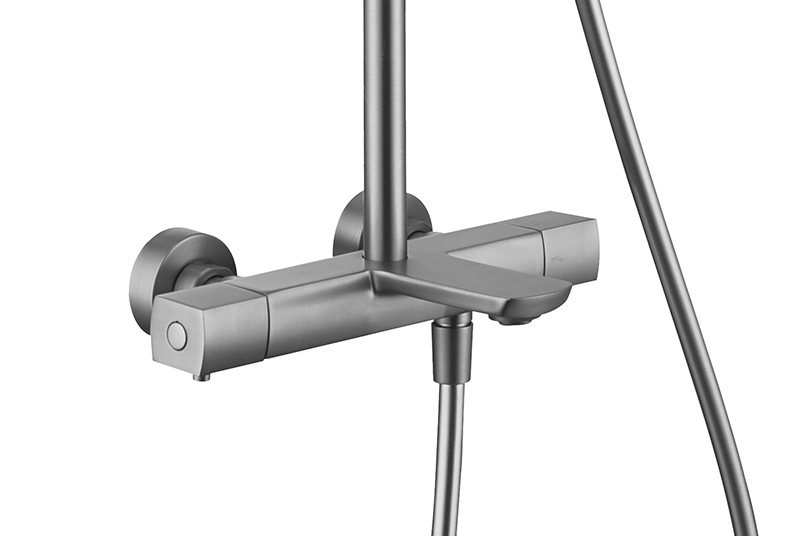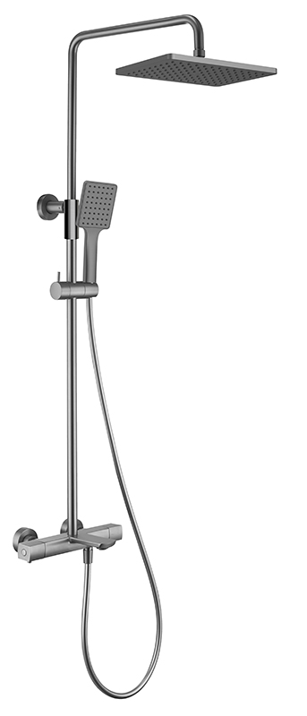 Душевая система KAISER Cube с термостатом и изливом, с регулируемой высотой верхнего душа, цвет покрытия воронёная сталь