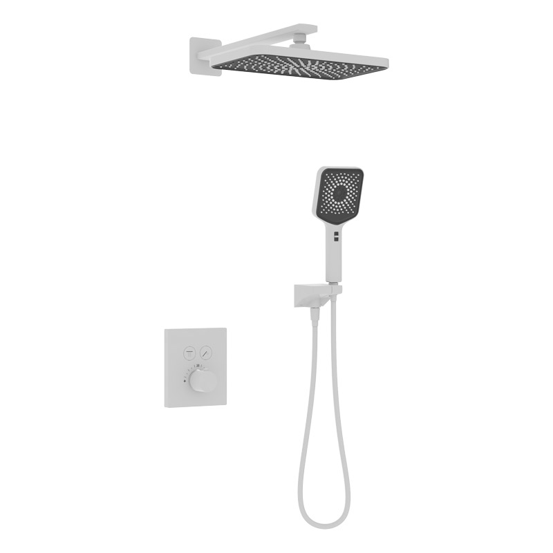 Душевая система KAISER Sano с термостатом, скрытого монтажа, поворот. держатель (3-jet, стац. лейка 320x200х16) /Белый матовый