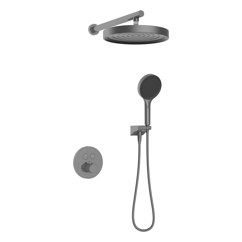 Душевая система KAISER Sano с термостатом скрытого монтажа, поворотн. держатель (4-jet, стац. лейка Ø300*33mm) /Воронёная сталь