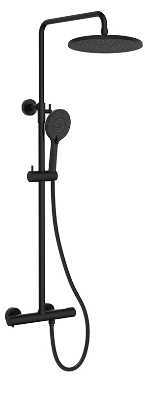 Душевая система KAISER Serio с термостатом, с регулируемой высотой верхнего душа, цвет покрытия чёрный матовый