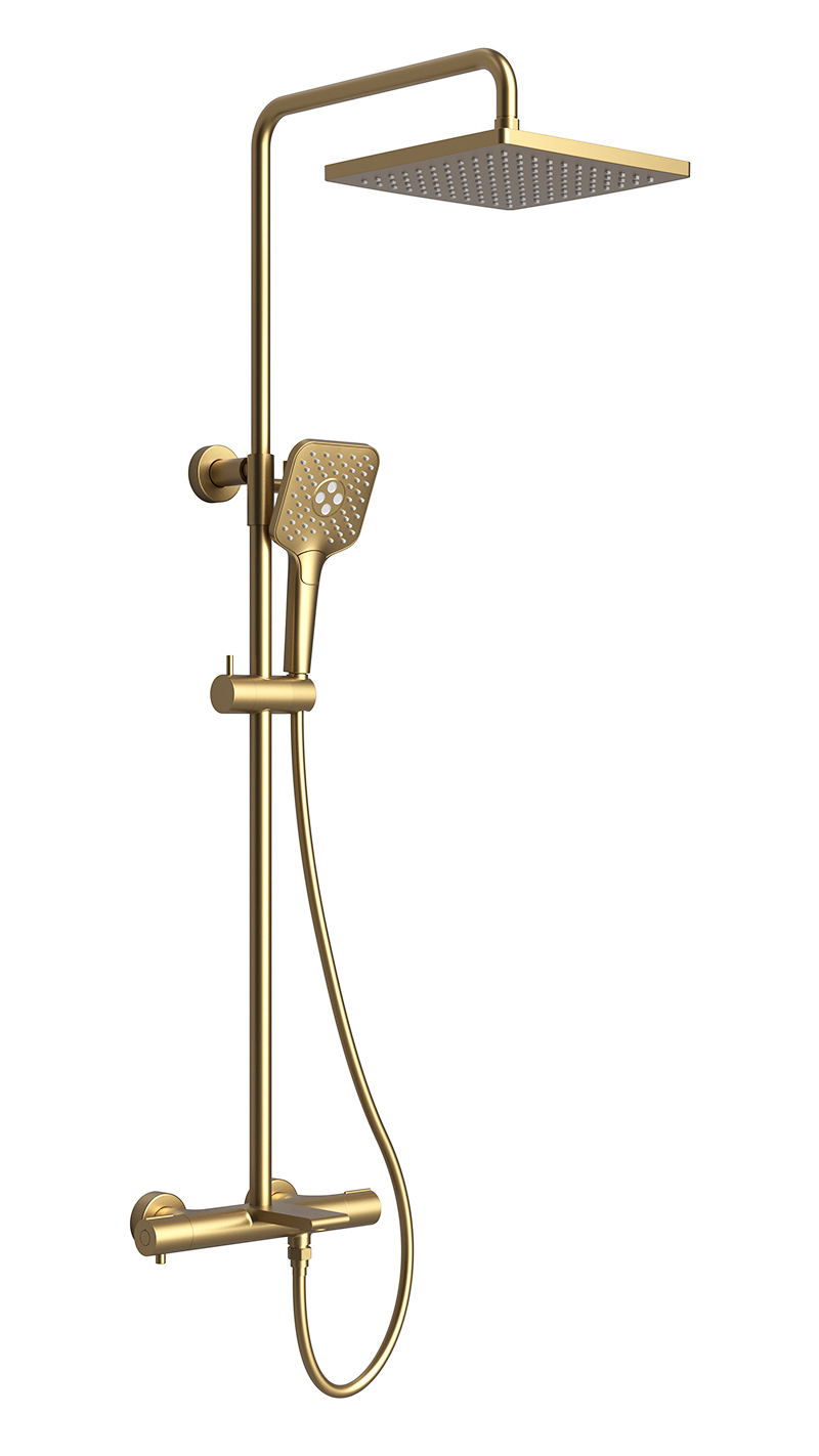 Душевая система KAISER Serio с термостатом, шлифованное золото