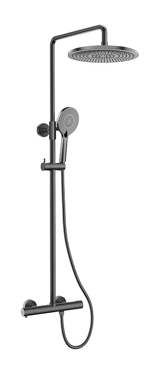 Душевая система KAISER Serio с термостатом, с регулируемой высотой верхнего душа, цвет покрытия воронёная сталь
